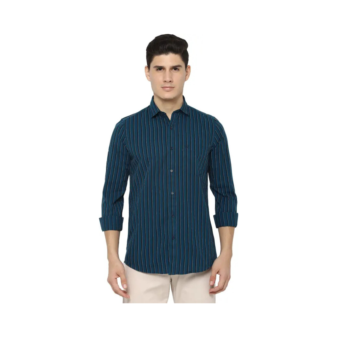 Look effortlessly stylish when you don this navy print shirt, tailored for a Slim Fit , from Allen Solly by Allen Solly.